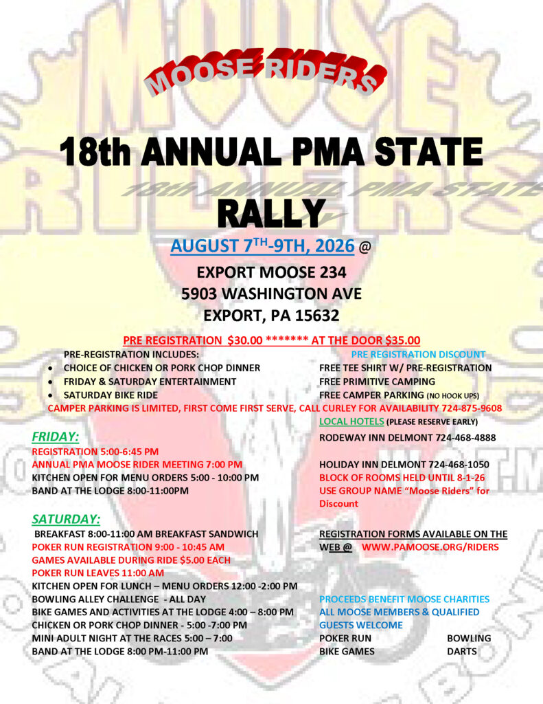 PMA Moose Riders Rally – 17th Annual – Lock Haven Lodge #100